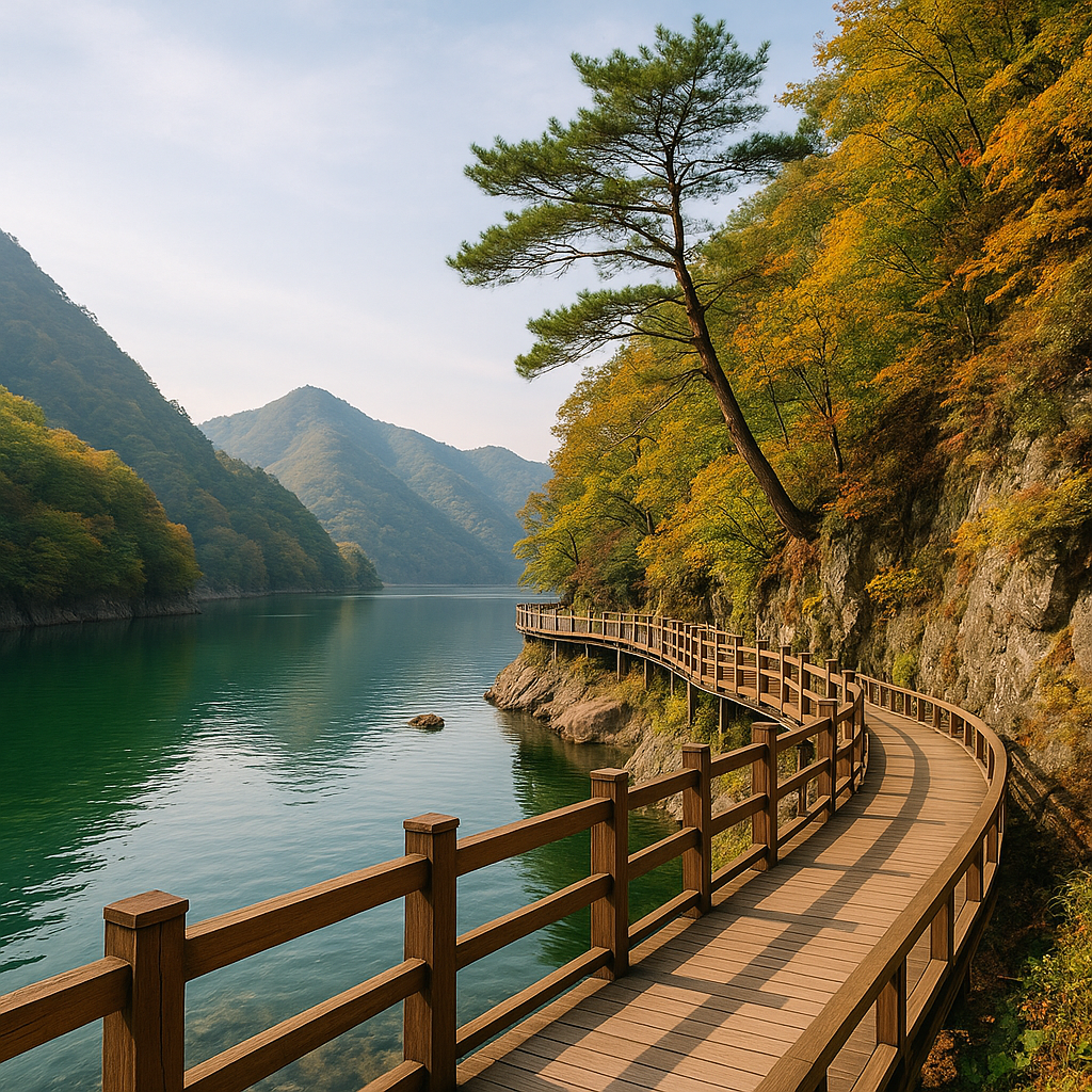 충청북도 괴산은 아이와 함께하는 여행에서 가장 중요한 요소인 안전성과 교육적 가치 두 가지를 동시에 만족시키는 지역이다. 그중에서도 산막이옛길은 가족 여행 코스로 매우 높은 평가를 받는 장소이다. 산막이옛길은 호수를 따라 조성된 평지형 산책로로 경사나 계단이 거의 없어 유아부터 초등학생까지도 무리 없이 걸을 수 있는 코스이다. 전체 코스는 약 3킬로미터 정도이며 걸어서 왕복 2시간 정도가 소요된다. 무엇보다 이 길의 강점은 걷는 동안 숲과 물 바위 다양한 자연 생태를 가까이에서 접할 수 있다는 점이다. 각 구간마다 설치된 생태 안내판은 아이에게 자연에 대한 호기심을 자극하며 부모가 직접 설명을 더해주면 단순한 산책이 훌륭한 야외 수업으로 탈바꿈한다. 길을 따라가다 보면 나무 데크와 흔들 다리 낭떠러지 전망대 등이 적절히 배치되어 있어 아이의 지루함을 줄여준다. 또한 길의 끝에는 산막이마을이 위치해 있으며 이곳에서는 전통 장류 체험이나 마을 음식 만들기 등의 가족 체험 프로그램이 진행되기도 한다. 사전에 예약하면 소박한 시골식 밥상도 함께 즐길 수 있다. 자연과 사람 그리고 가족이 함께 호흡할 수 있는 괴산 산막이옛길은 도시 속에서 일상을 보내던 아이에게 새로운 감각을 깨우는 장소가 된다.